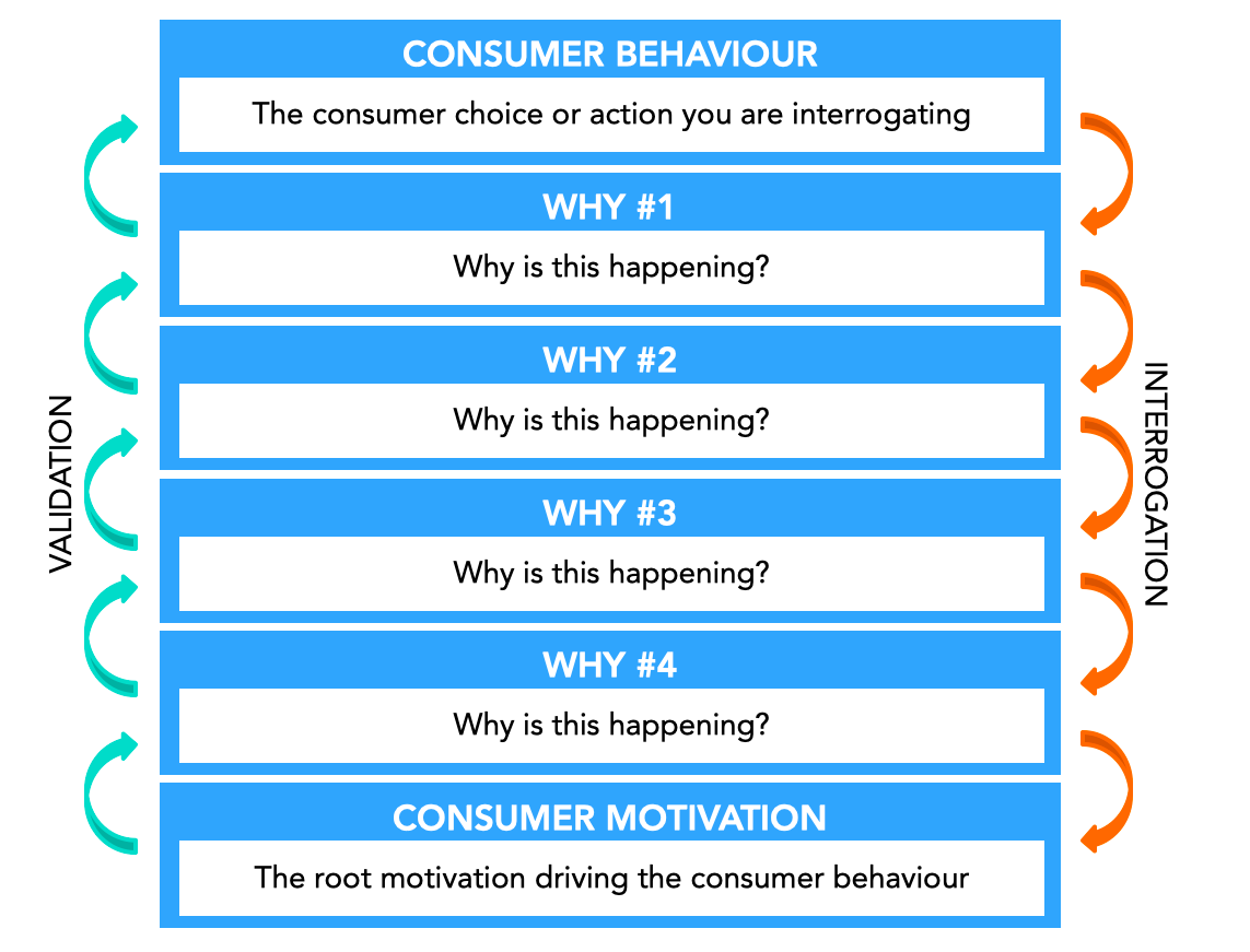For marketers using 5 Whys to understand consumer motivation, begin by identifying the specific consumer choice or behaviour you are interrogating. What exactly do you want deeper insight into?