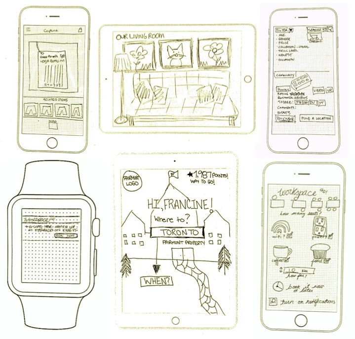 The purpose of this exercise is to demonstrate how focusing on a specific customer problem can lead to new types of service solutions that are enabled by technology. Participants are split into groups and assigned different brands, customer personas, and contextual goals. They are then instructed to identify a specific problem to solve—something that this persona finds particularly challenging or annoying in achieving their goal. Participants then invent, sketch, and name a new digital service to address this narrow and tightly defined problem. This exercise reinforces the importance of designing solutions based on real (and often overlooked) customer problems, and exploring functional service solutions (as opposed to strictly communication ideas). Based on a few of the participant sketches below, it also gives marketers a newfound appreciation for UX designers :-)