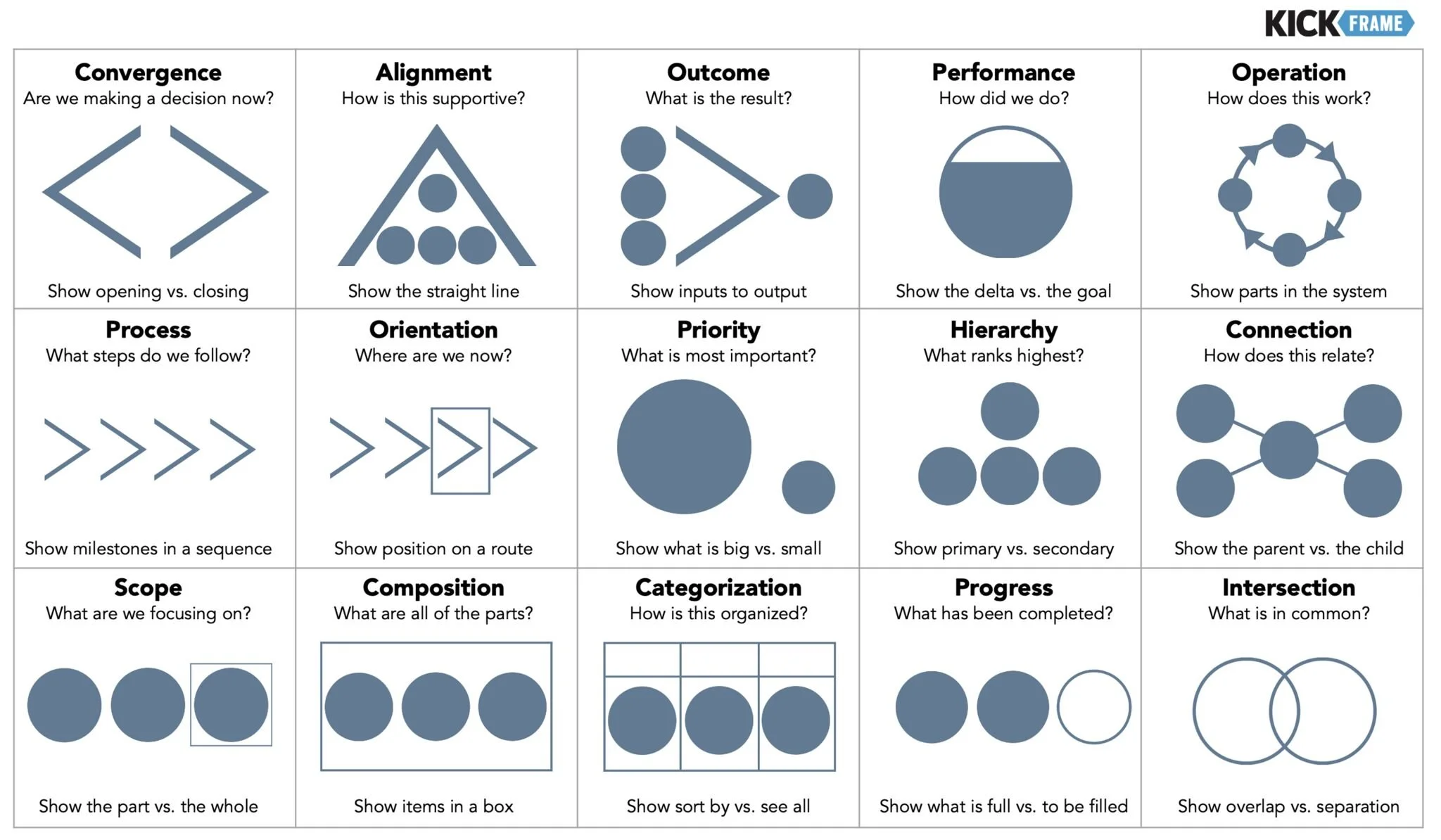 I’m not proud of how much time I spend monkeying around in PowerPoint. I’ve wasted full days shunning SmartArt for bespoke versions of simple process diagrams. Why? As a visual learner and compulsive whiteboard doodler, I’ve always been drawn to (pun intended) the relationship between what we see and how we think. Frameworks and visual cues play a huge role in how we interpret information. Visual models become mental models. As a consultant and trainer, I've found that incorporating the right visuals into a presentation can help me to explain things more clearly, structure sessions more effectively, direct the attention of participants, and ultimately influence outputs.