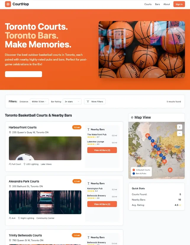 AI-Powered App Builders: I’ve been tinkering with Replit and Lovable lately. As a non-coder, it’s wild how quickly you can prototype mobile apps using plain-language prompts. It’s helpful in my world to be able to quickly visualize an idea (even in a very basic way), instead of just describing it. Below is my latest: an app that helps me to find outdoor pickup basketball courts within walking distance of a bar for post-game beers. Might need to add a filter for nearby emergency rooms too.