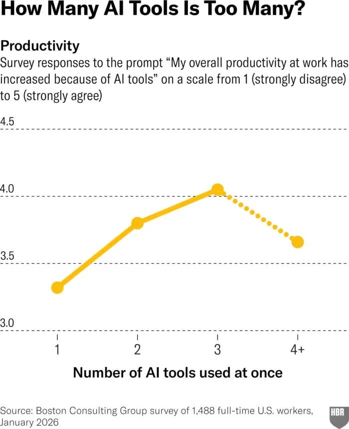 The other term is “Brain Fry,” which refers to mental fatigue from excessive use or oversight of AI tools beyond one’s cognitive capacity. Now this one I relate to. Research shows that people found their overall productivity at work increased when using up to using 3 tools, after which it started to dip. Many described a feeling of “fog” from juggling different tools. Interestingly, this condition cited most in marketing roles, the number one job function experiencing “Brain Fry”.